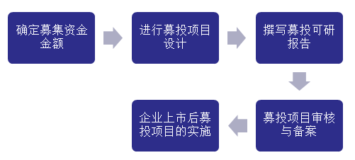 IPO募投項目是證監(jiān)會審核的重點,募投項目設(shè)計的合理性對企業(yè)能否IPO過會至關(guān)重要。企業(yè)在上市過程中,其募投項目的實施一般會依照以下流程: